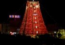 All gopurams and vimanams of Sri Kapali Temple colourfully illuminated