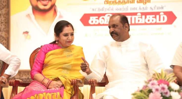 Recently, the MP and Vairamuthu, besides other dignitaries, were seen on the stage at a literary meet.