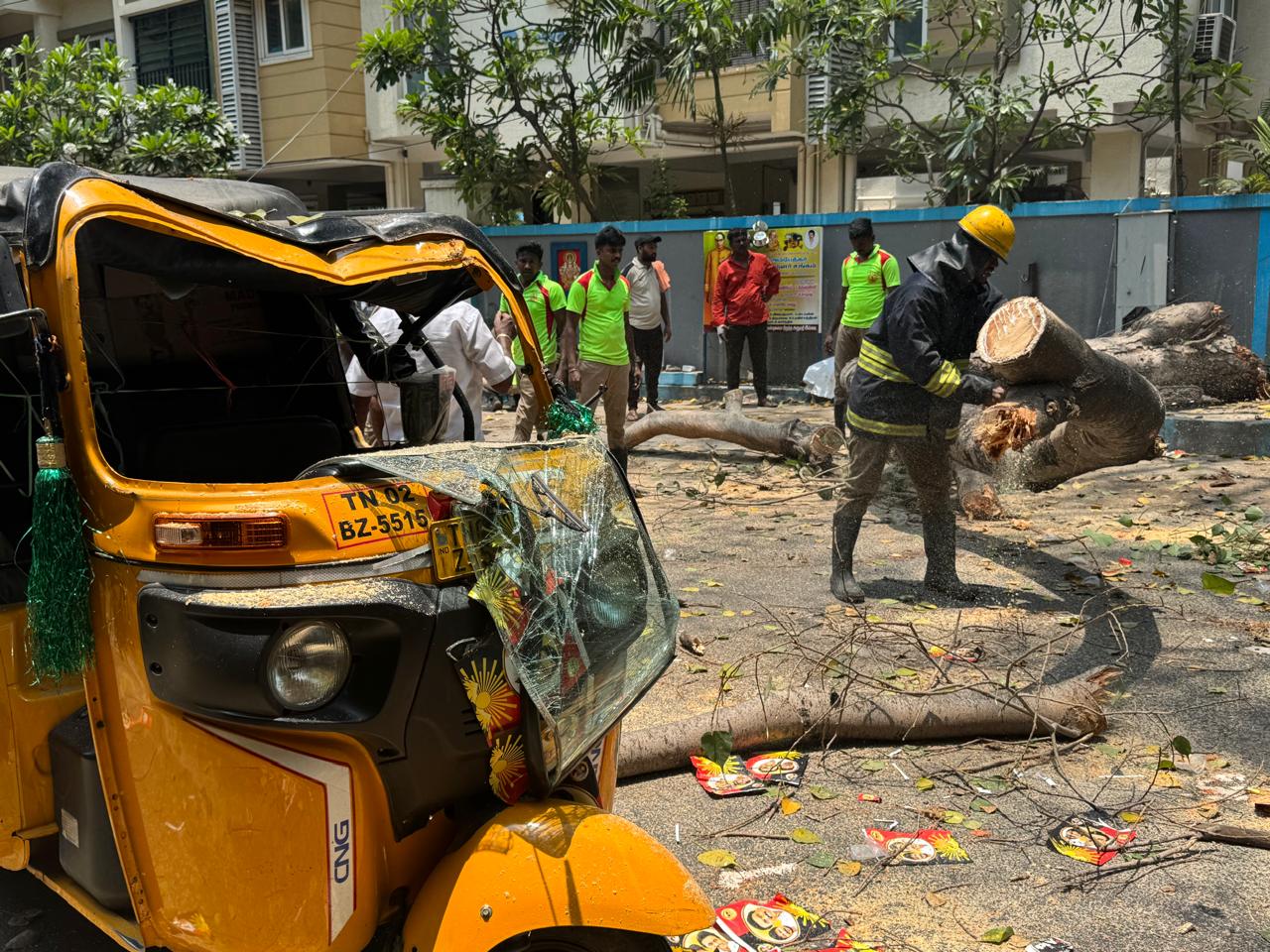Police, GCC and Urbaser staff rushed to the spot, chopped the branch off the tree and cleared the road.