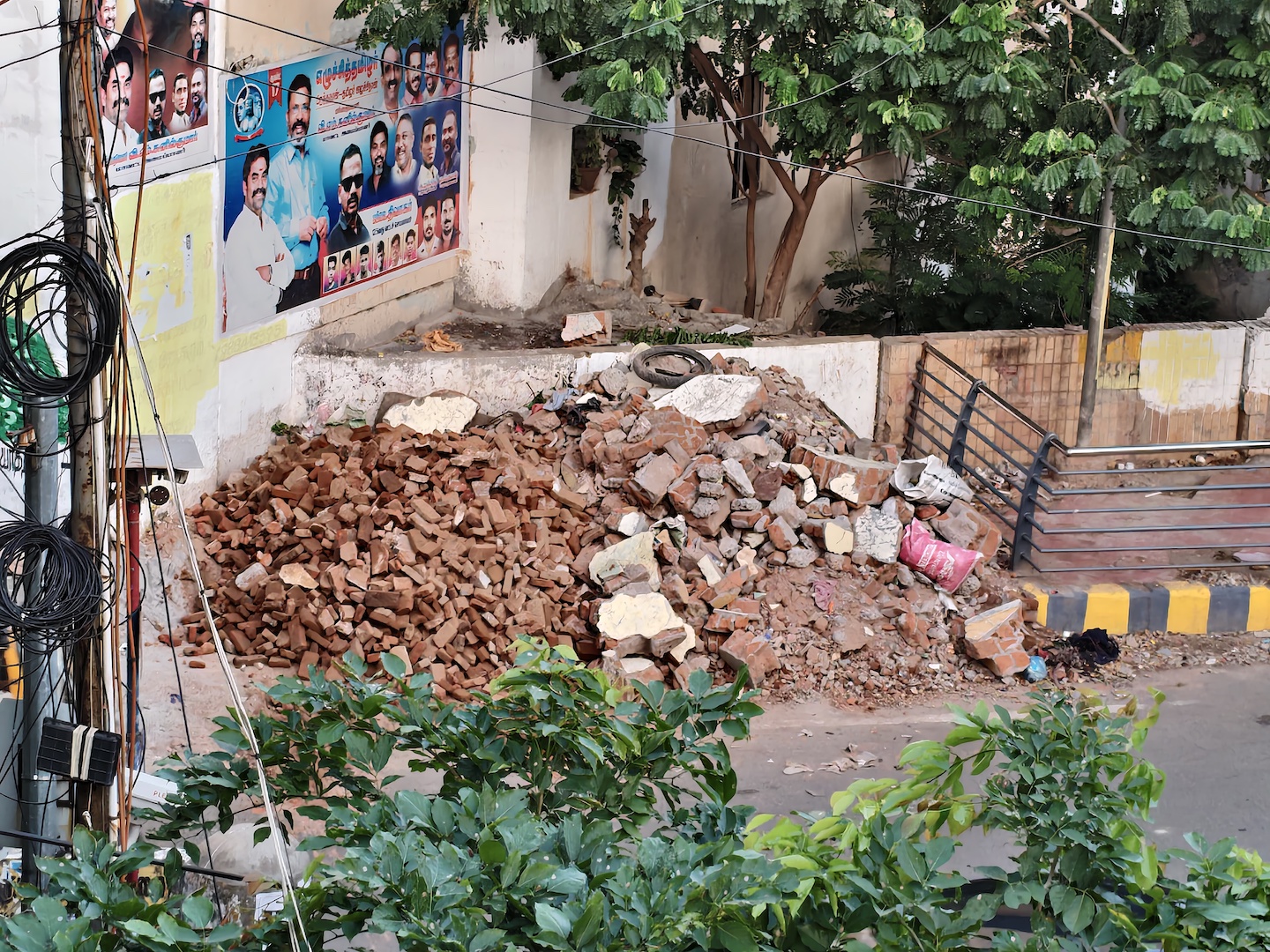 Last month, GCC team had cleared the area of the bricks and accessories. But inside two days, unknown people dumped a set of bricks in an attempt to reclaim space.