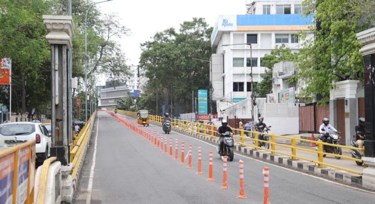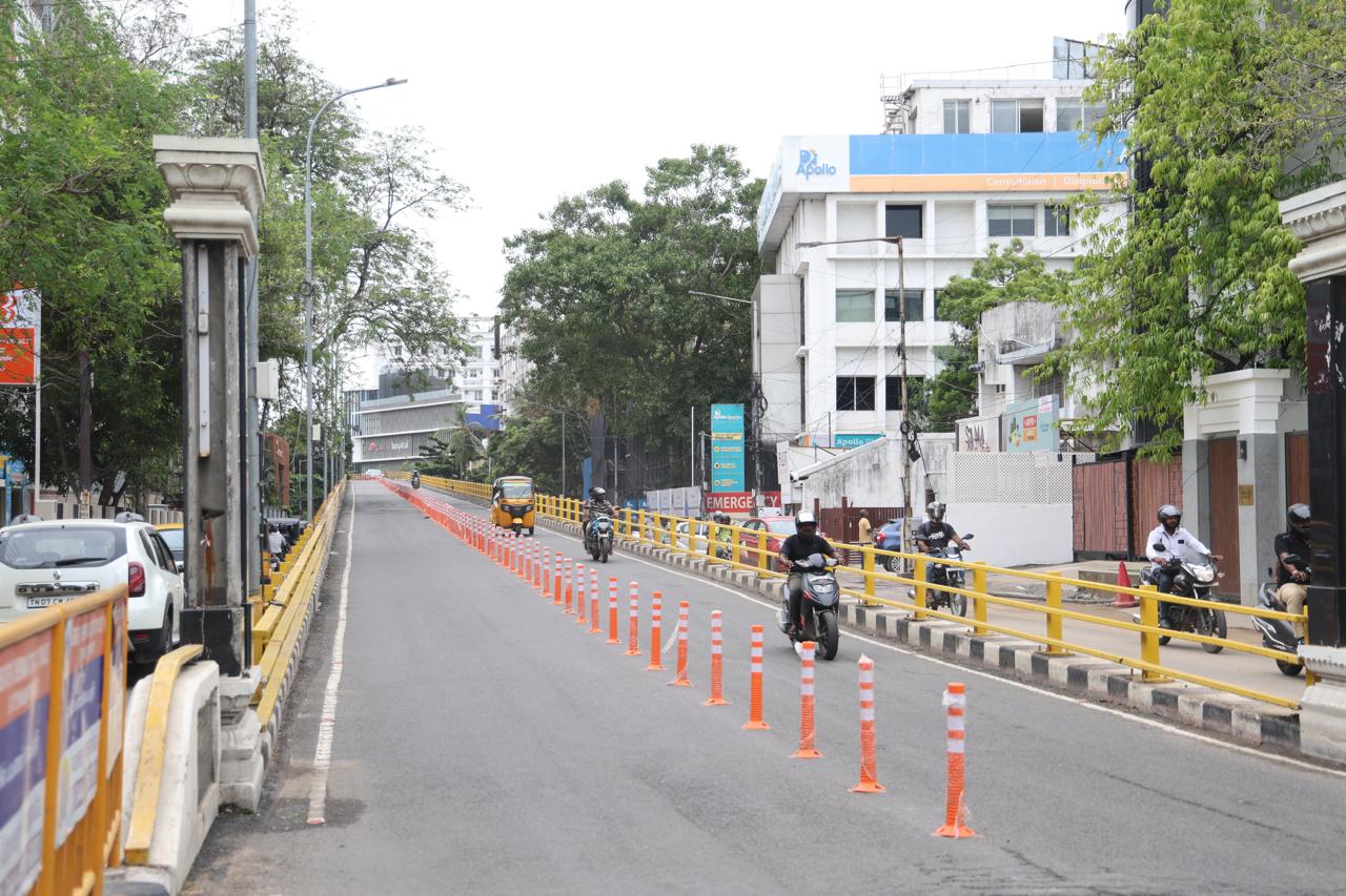 The dividers create two lanes for the vehicles that move from the TTK Road side to C P Ramaswamy Road side.
