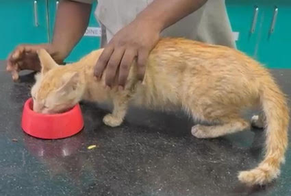 The dehydrated feline was immediately rushed to a nearby Vet clinic for observation and rehydration.