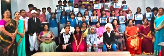 Headmistress A. S. Geethanjali, staffer V. Lakshmi, and committee member Dr. P. Charumathy were present.