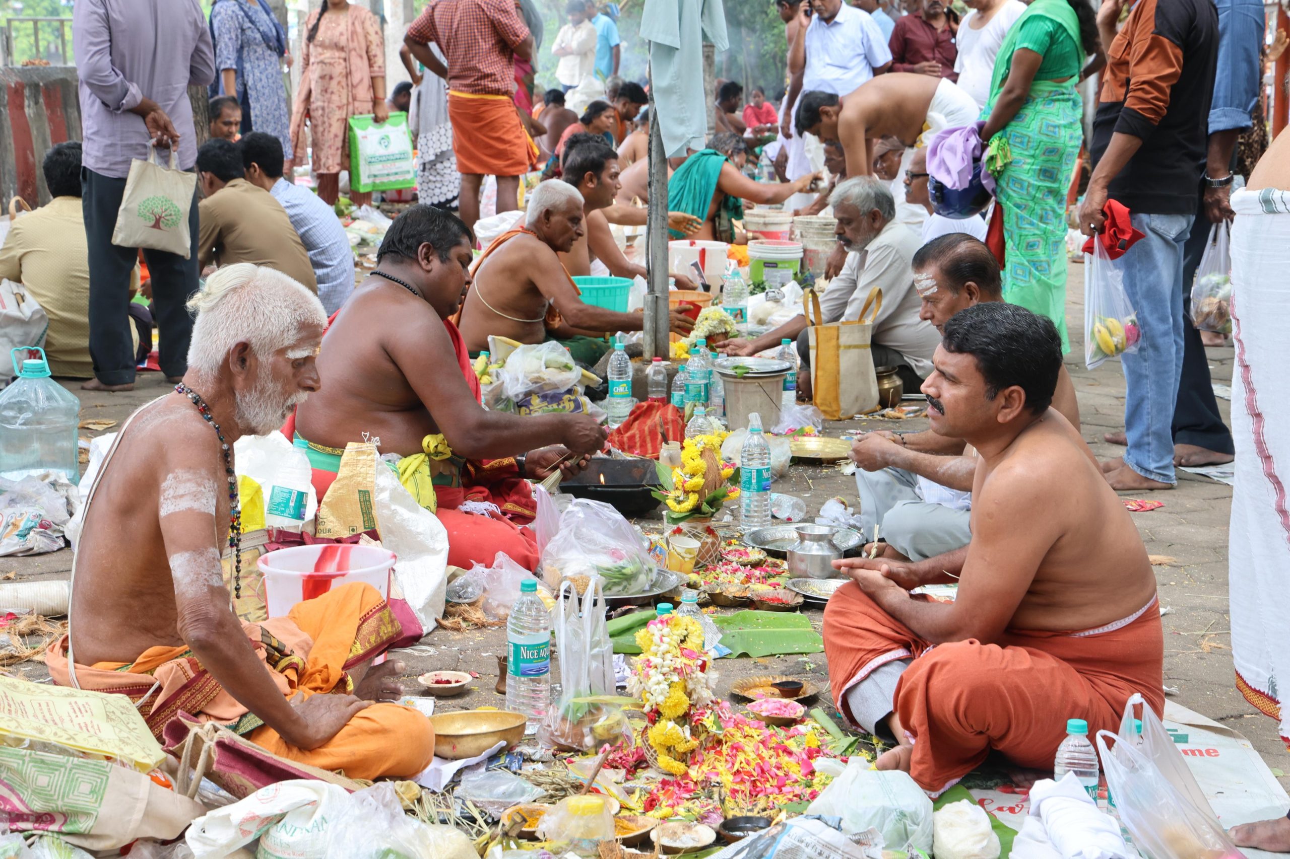 At one point in the past, the temple management discouraged the use of the tank space for these rituals and people spilled on to the busy R. K. Mutt Road to conduct them.