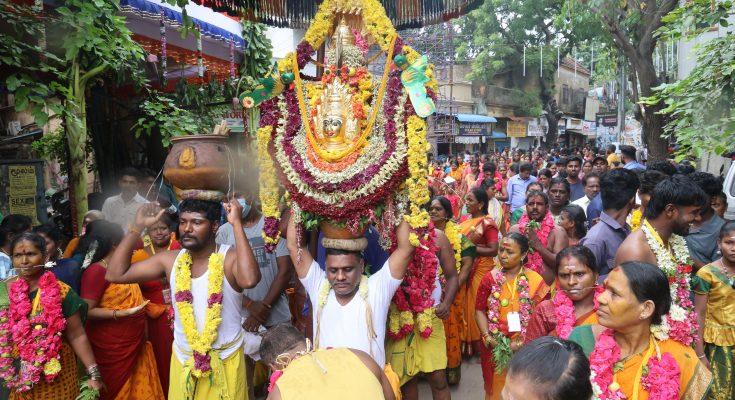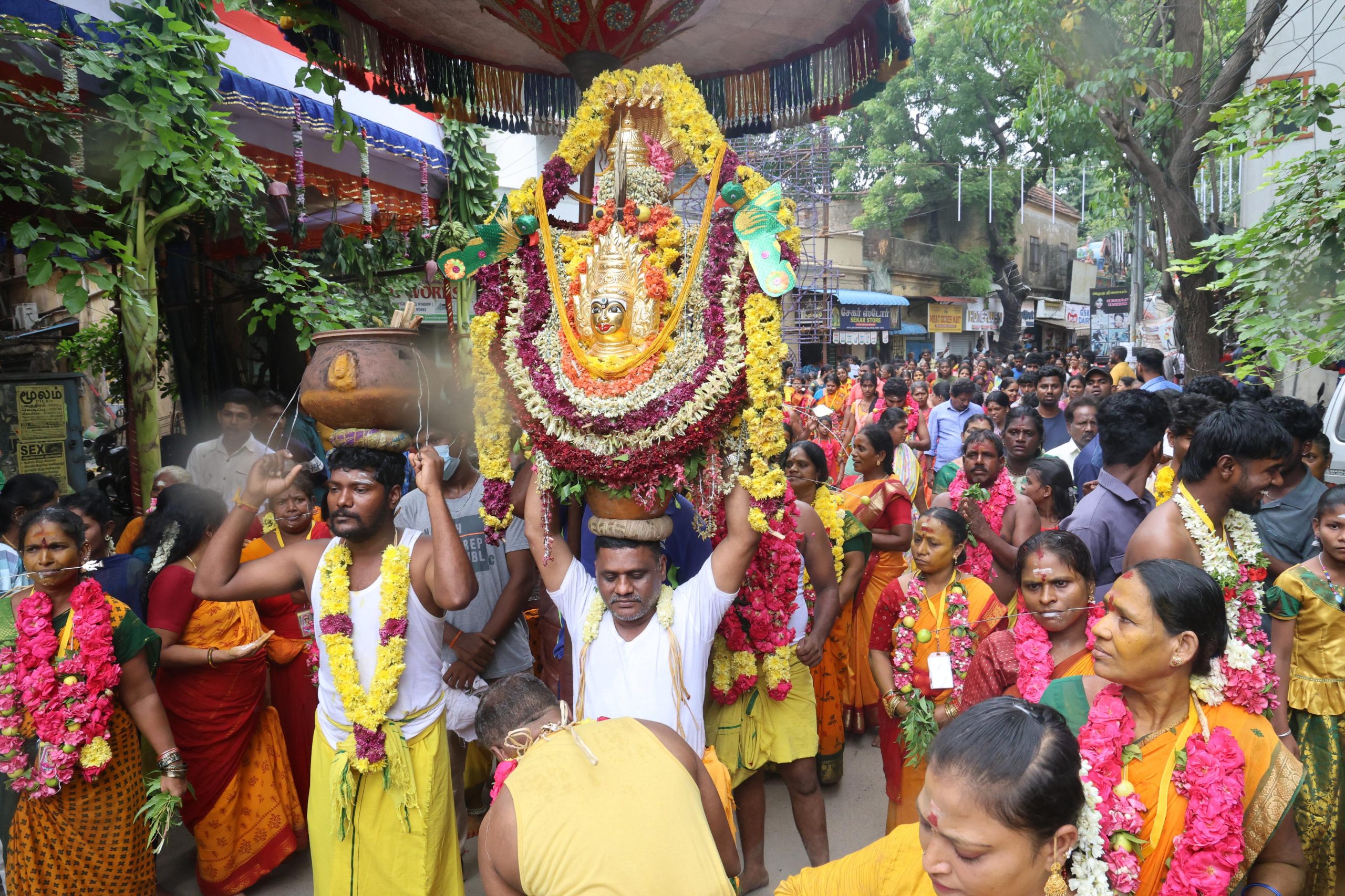 A shade after the Aadi season got over, this Sunday ( August 17) was a date for the annual ‘thee midhi’ or fire walking act of the community which was held outside Sri Nagathamman Temple on Sri Mundagakanni Amman Temple, Mylapore.