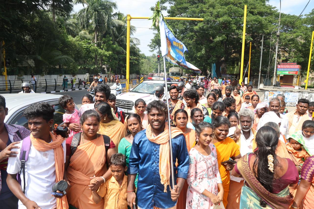 At some places, people handed over water sachets to the devotees and at the Pattinpakkam point, under a shamiana, Mylapore MLA, Dha Velu and his DMK party colleagues gave water, cool drinks and small snacks to the devotees.