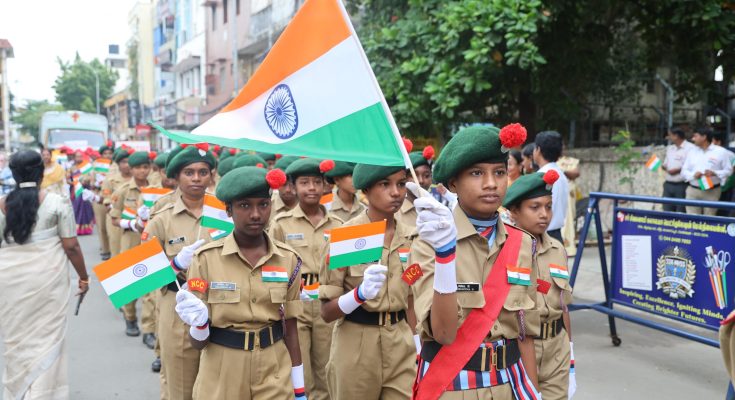 Students of Lady Sivaswami Ayyar Girls School and the Group’s other schools took out a rally in the Mada Streets zone, with cadets marching in the lead.