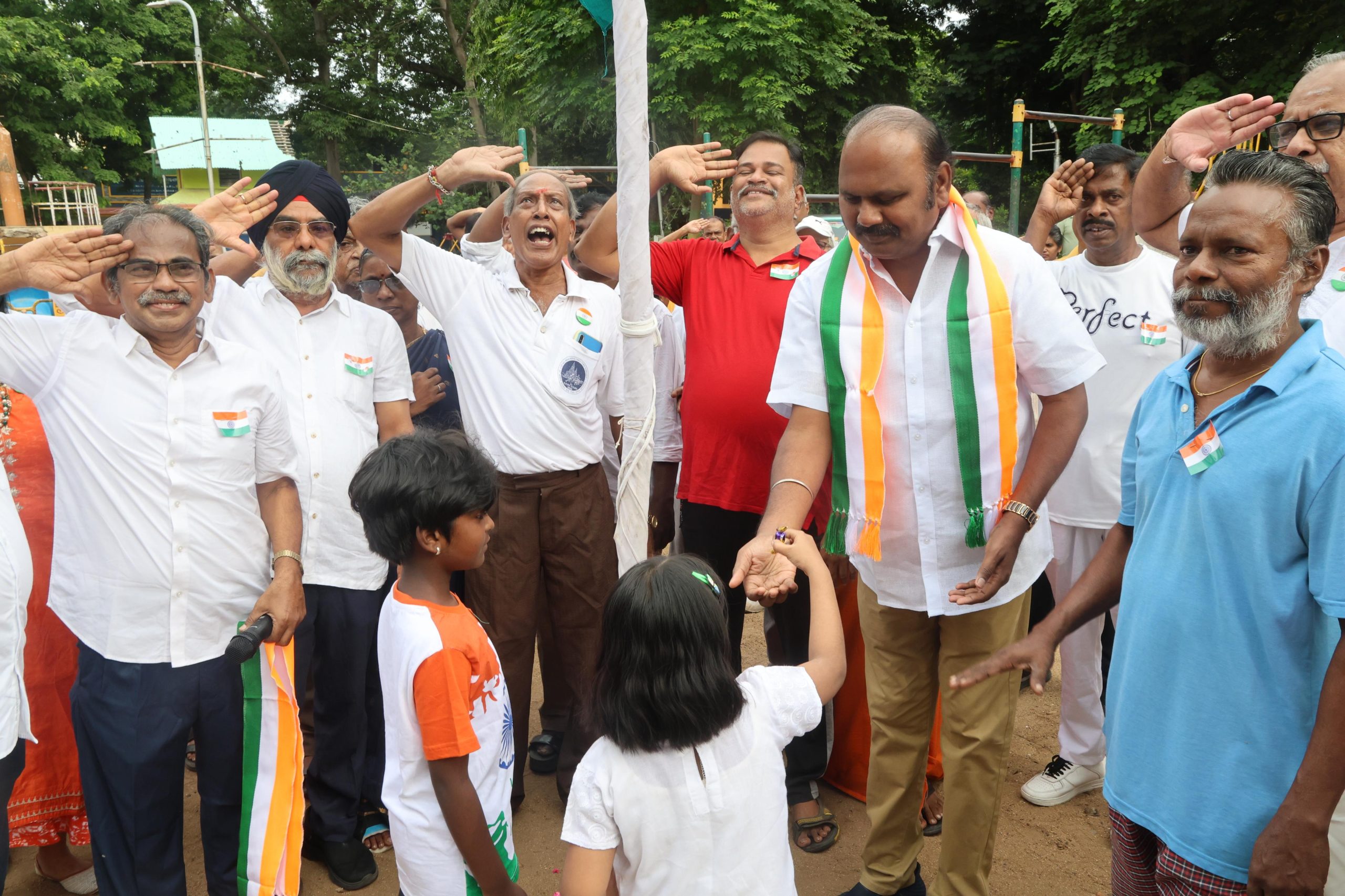 Baskar Seshadri reported that the Mylapore MLA, Dha Velu, took part in the national flag hoisting event held at Nageswara Rao Park, Luz. Park regulars were at the event.