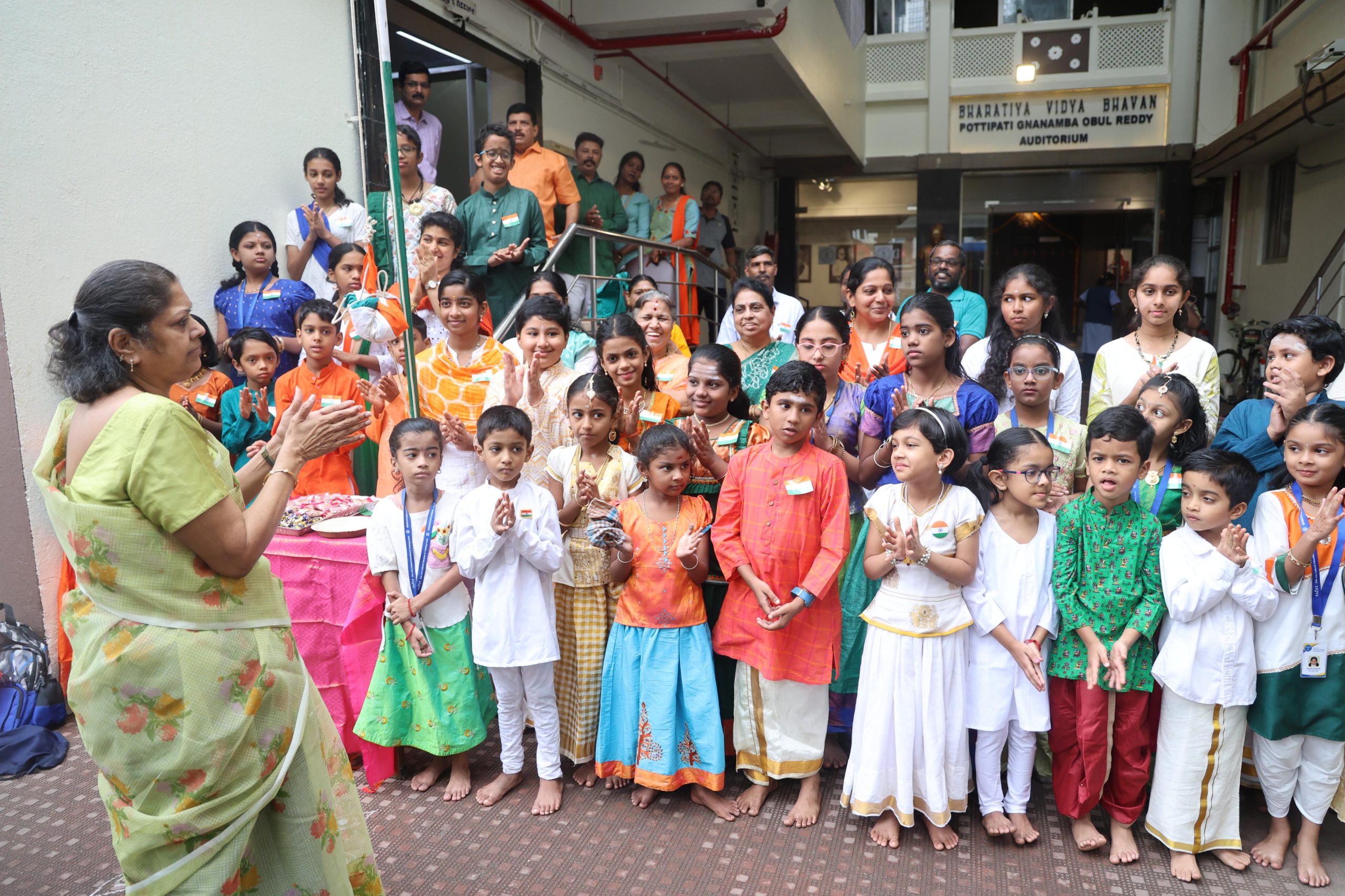 Choir music conductor Sudha Raja led a choir of children to perform in the campus of Bharatiya Vidya Bhavan, Mylapore after the Indian flag was hoisted here. Officials of the Bhavan and parents of the choir members and guests took part.