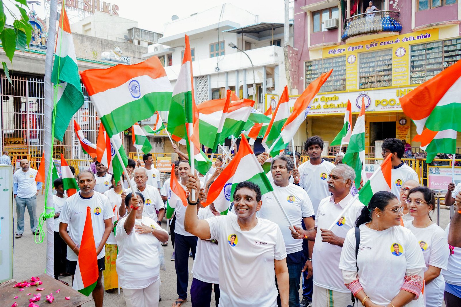 R. Shivakumar reported that Dr. J. S. Rajkumar, chairman and MD of Lifeline Hospitals flagged off and led a run from Rani Meyyammai Girls School to Sri Kapaleeswarar Temple. Some 30 people joined him. He later unfurled the national flag at a makeshift space near the temple..