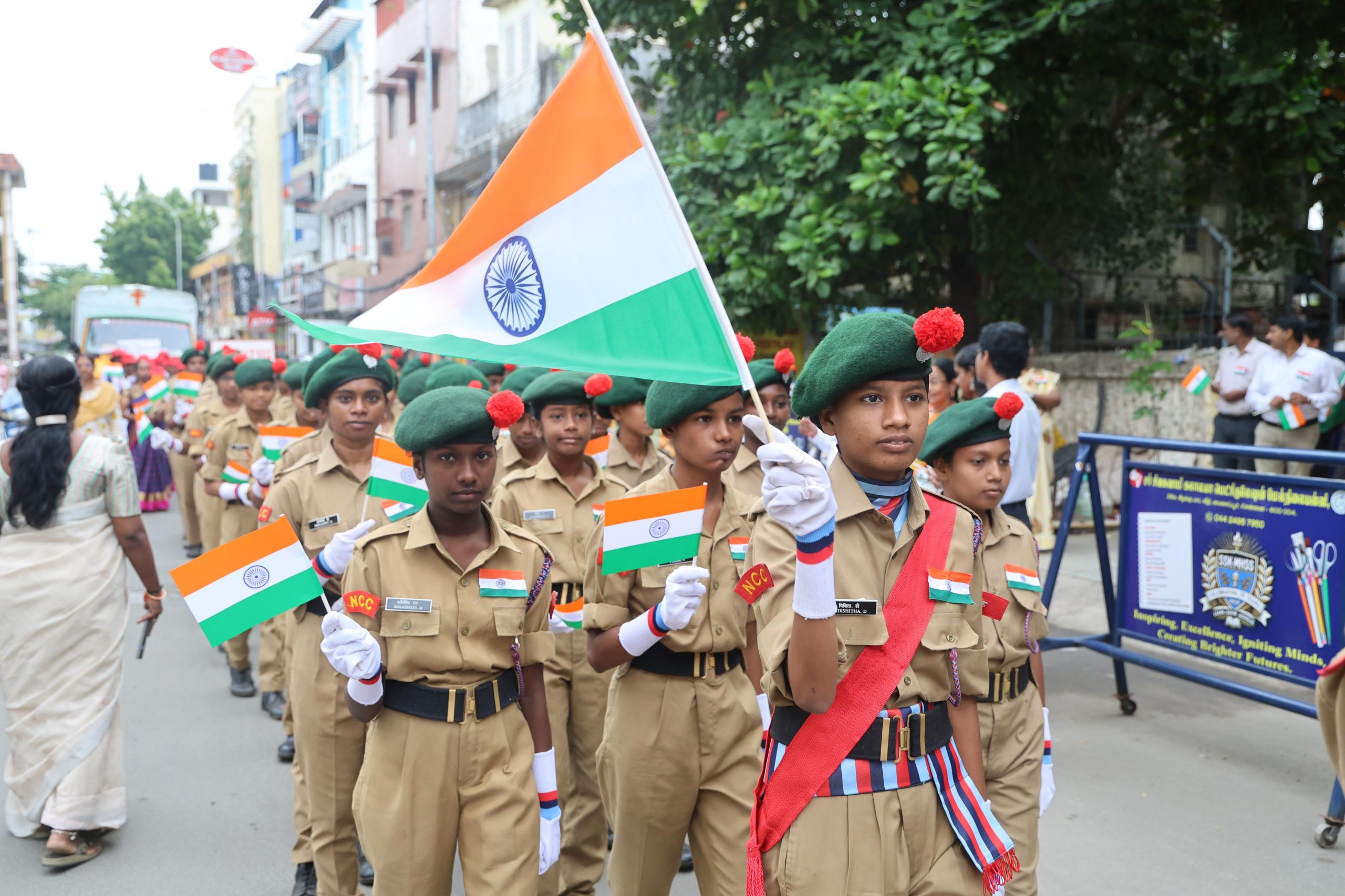 Students of Lady Sivaswami Ayyar Girls School and the Group’s other schools took out a rally in the Mada Streets zone, with cadets marching in the lead.