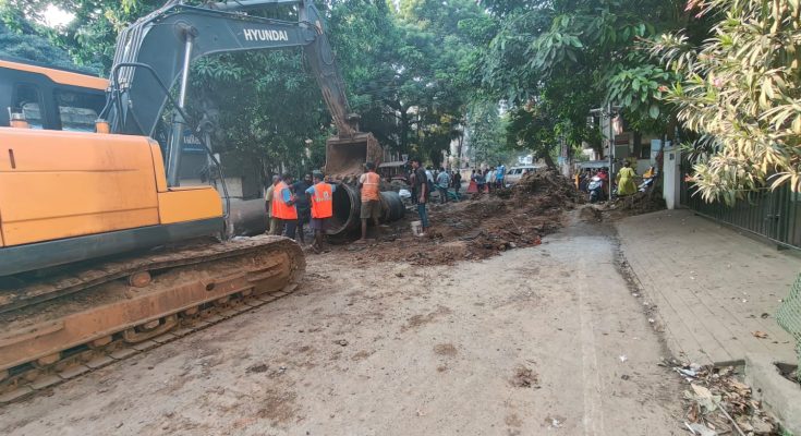 Major sewage pipeline relaying work is in progress at the Thiruvengadam Street intersection outside Ragamalika Apartment.