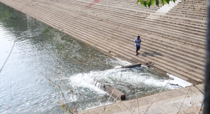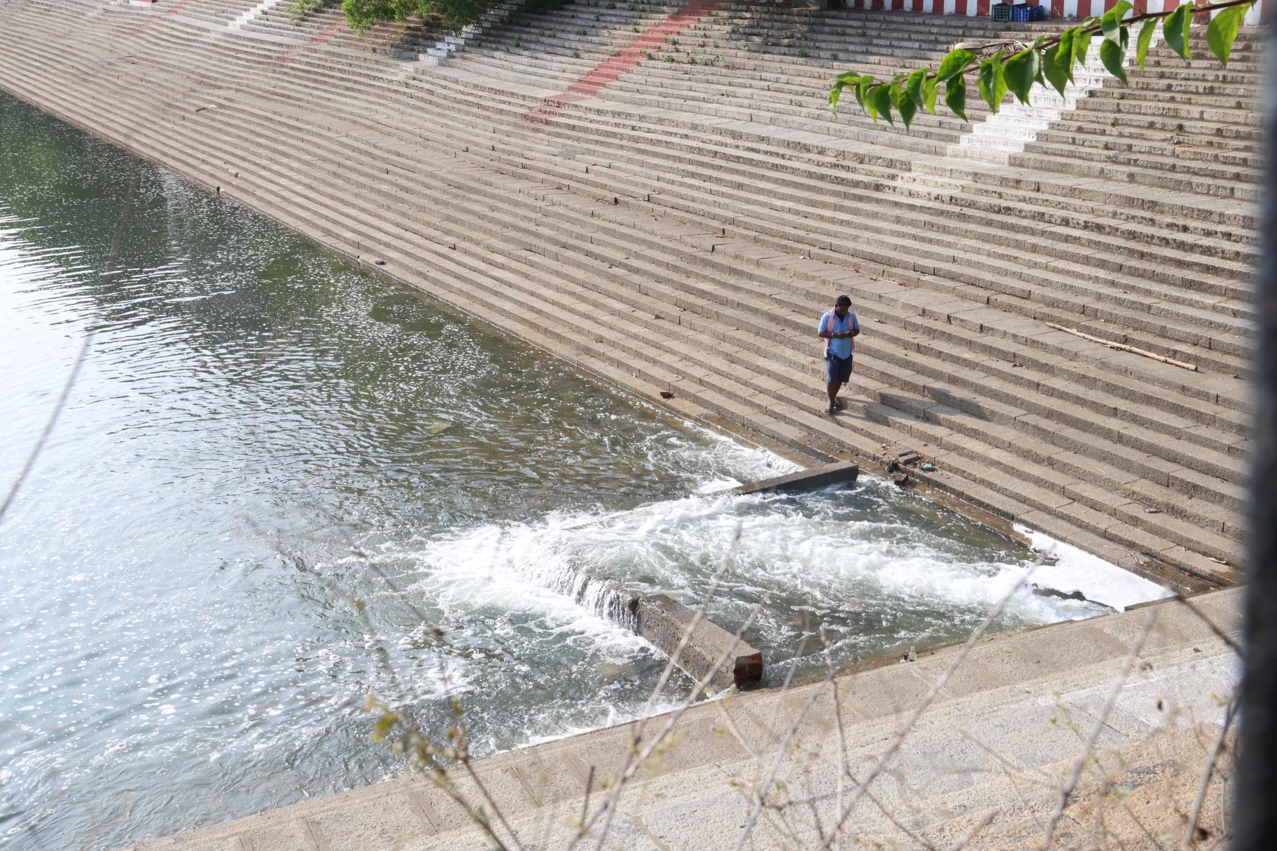 The water is being channeled via a SWD drain at the south-west end of the tank, opposite the Sangeetha restaurant end. This is a majorĀ inlet for rainwater to flow into the tank when it rains.