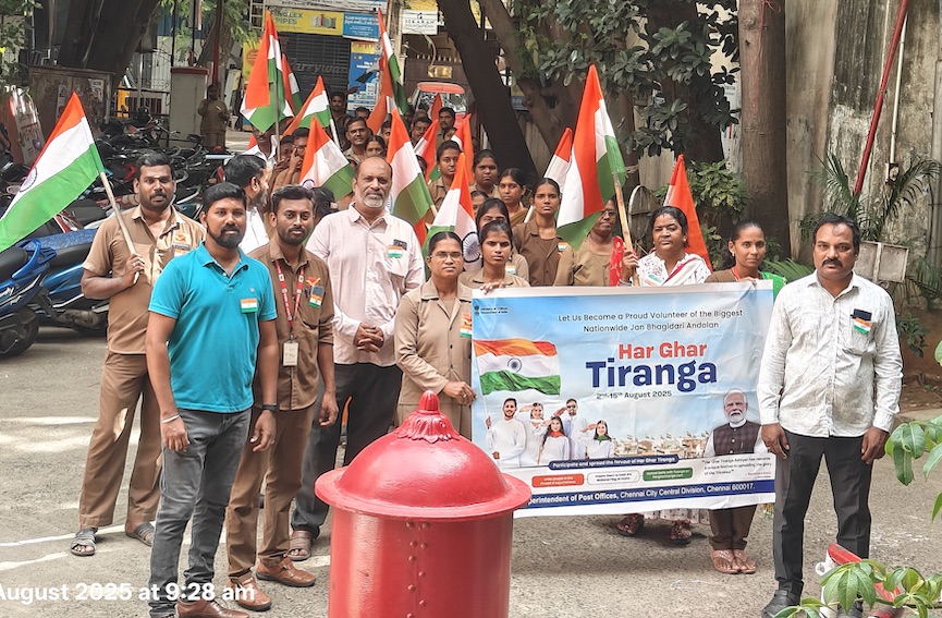 To mark India’s 79th Independence day, staff of Mylapore Post Office conducted a rally under the theme ” Hat Gar Tiranga ” on August 14.