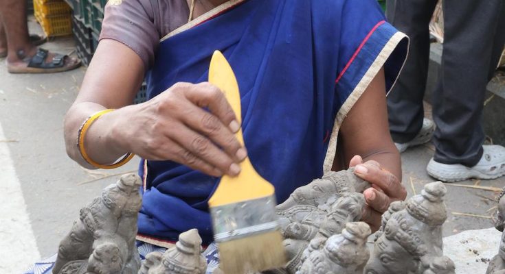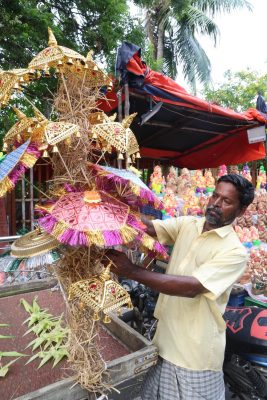 Images of Vinayaka, clay ones, sold at Rs.100 – 125. The fancy, tall ones sold at Rs.3,000. Some are brightly painted and these are from Mumbai and Kolkatta, said one hawker.