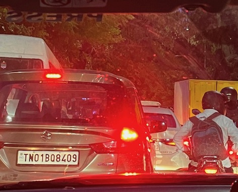 Some of them take the right on Sriman Srinivasa Road and join TTK Road at a point before Narada Gana Sabha. But cars are parked on both sides of Sriman Srinivasa Road and traffic jams occur.