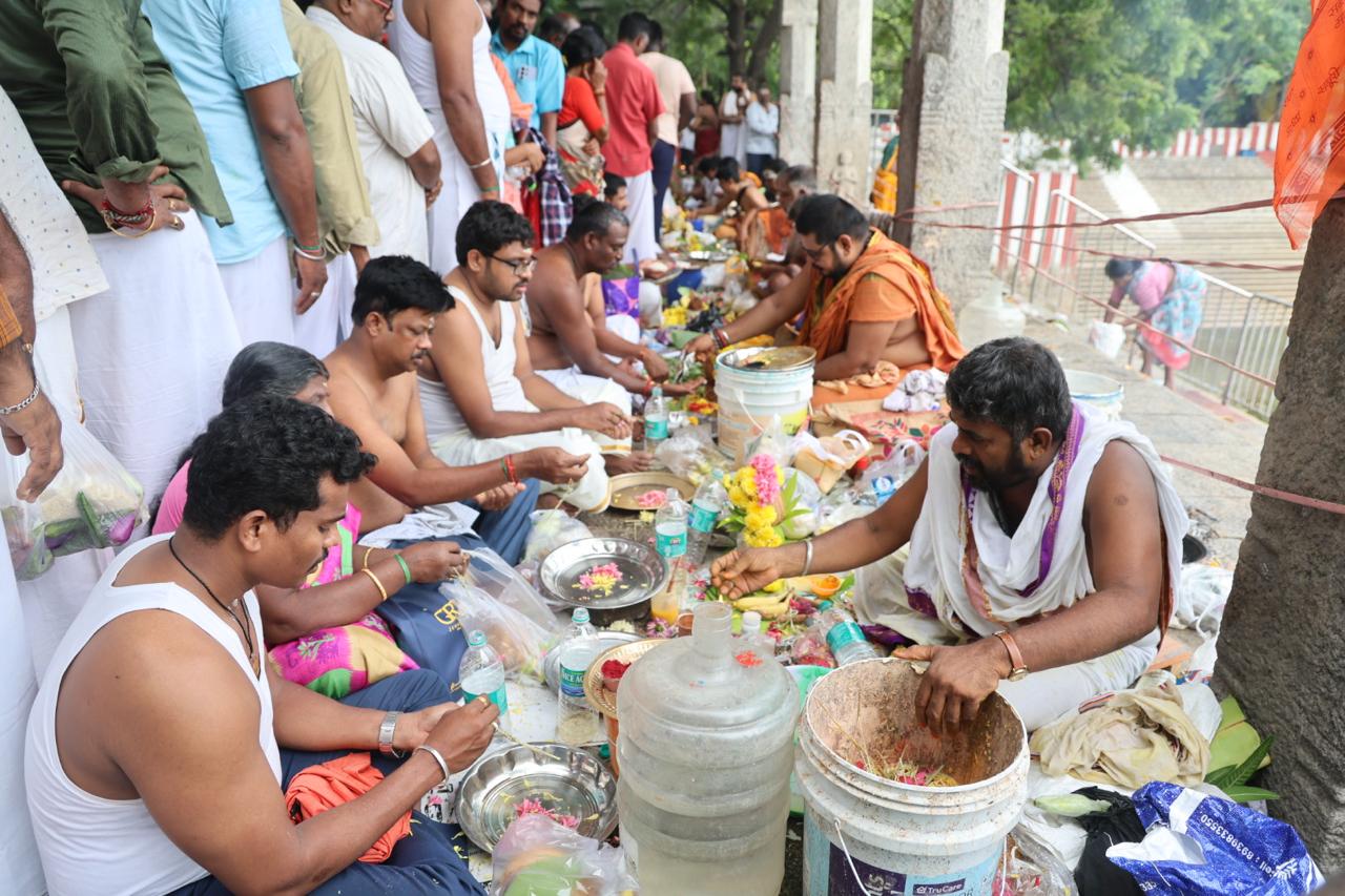 Being a Sunday, and since traffic is curtailed here due to Chennai Metro work, people found it easy to locate space on the pavement and take part in the rituals.