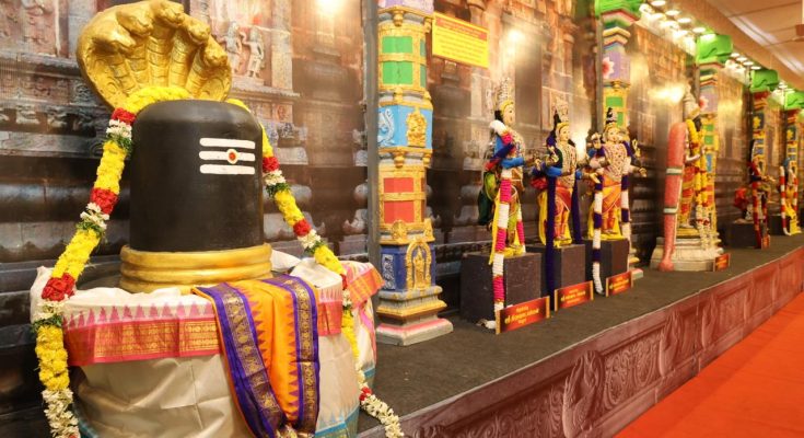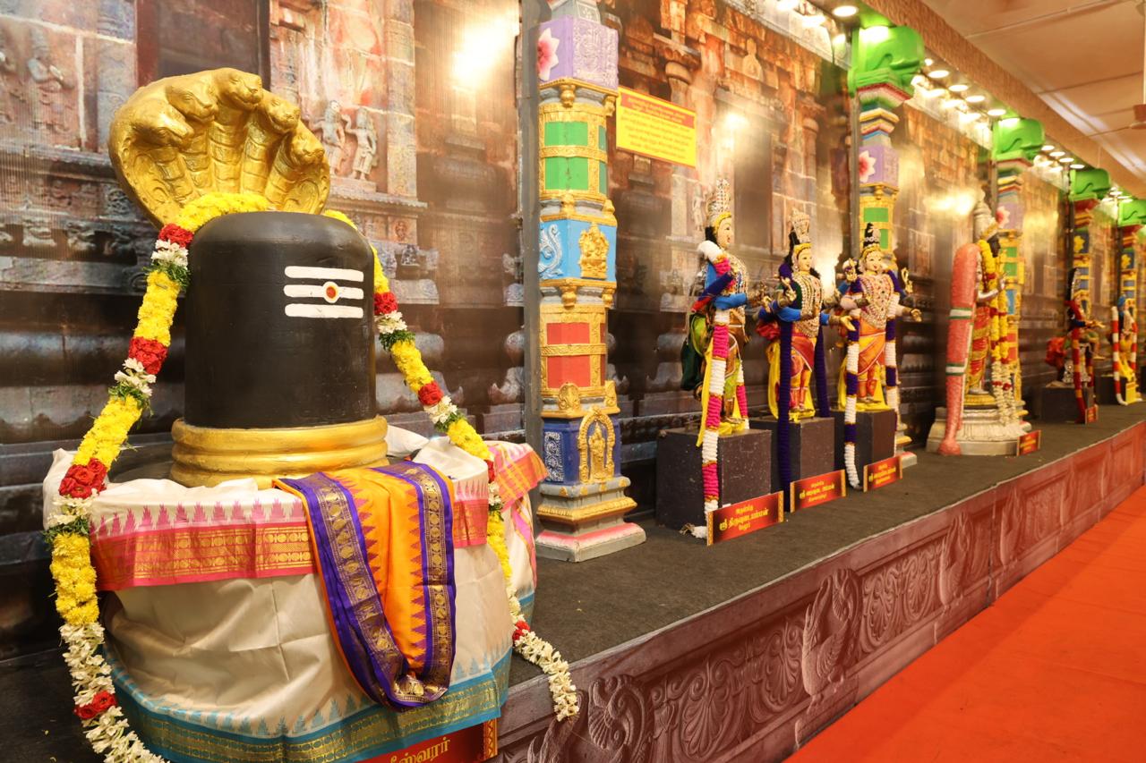 Almost 95% of the display is made at home including Nandi, Dhwajasthambam, trees, etc.