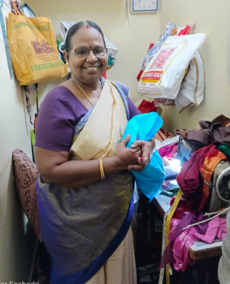 Lakshmi is an expert in stitching all kinds of garments for women and for children.