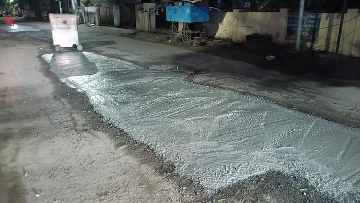 Workers contracted by GCC and Chennai Metro have begun doing ‘patchwork’ in this busy street, which is a key route for traffic diverted from the Adyar – R A Puram side to Mandaveli and Mylapore due to Chennai Metro project work.