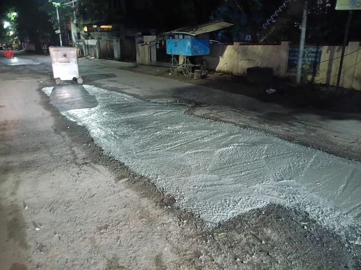 Finally, the potholes and uneven sections of Thiruvengadam Street in Mandaveli are getting some attention.