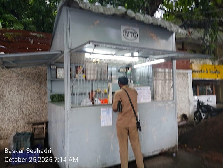 Ever since MTC moved its operations at the Mandaveli terminus to a few locations, the busy one is the halt alongside the Mandaveli MRTS station, opposite Venugopal Vidyalaya school.