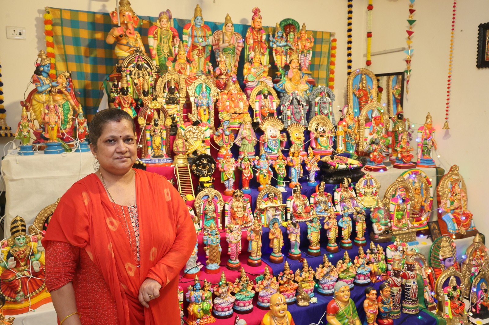 The theme sets included city parks, cricket matches, popular spots in Chennai and places of pilgrimage. Some families used coloured illumination, some designed large, intricate beautiful kolams for the kolu.