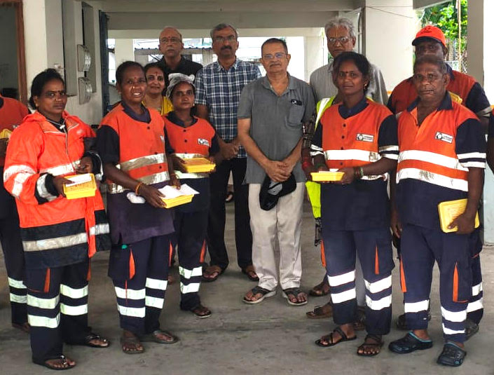 Raja Annamalaipuram Residents Association (RAPRA) gives gifts to Urbaser Staff civic staffers every year. Residents willingly contribute their mite for this purpose.