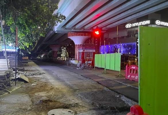 This project had necessitated the closure of TTK Road at the Kauvery Hospital signals junction and the traffic was diverted.