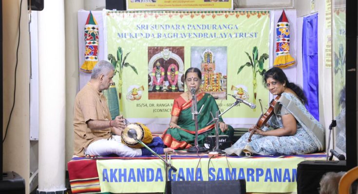 60 hours of non-stop devotional music is the festival which began this Nov.16, Sunday morning and will end after 7 p.m. on Tuesday, Nov.18 at the Sri Sundara Panduranga Mandir on Dr. Ranga Road, Mylapore.