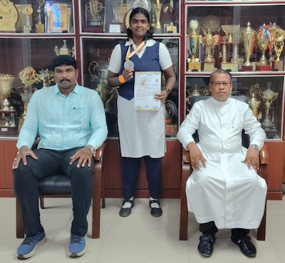 A. Shrinidhi, student of San Thome Higher Secondary School was placed second in boxing in her category at the 69th School Games held in Itanagar, Arunachal Pradesh.
