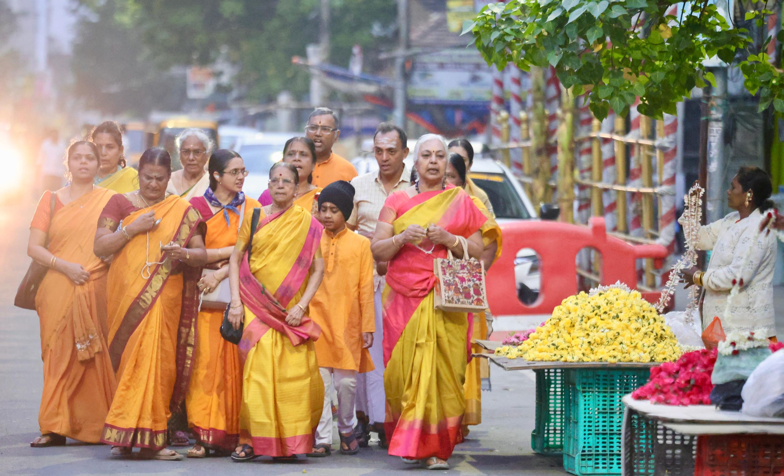 The post midnight temperature in the city has dipped to a low of 21 degrees the past few days and the chill could be felt in the air. But the members of each group had come well-warmed – some wearing light sweaters, some monkey caps and most women in pattu saris.