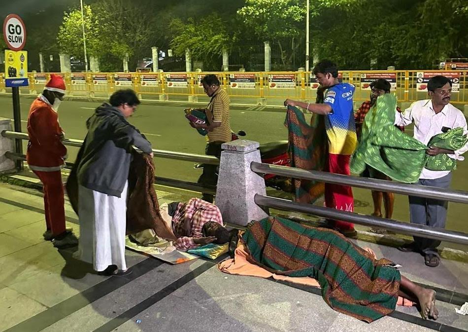 On the night of December 24, some members of the church did rounds of the San Thome area and distributed around 150 blankets to the pavement dwellers and the poor.