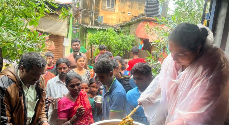 On December 3, Ecokitchen, a unit of Y R Gaitonde Medical Education and Research Foundation based at Injambakkam, ECR arranged to provide food to residents in the kuppam areas along Marina Loop Road whose lives were affected by the steady rain and cyclonic weather this week.