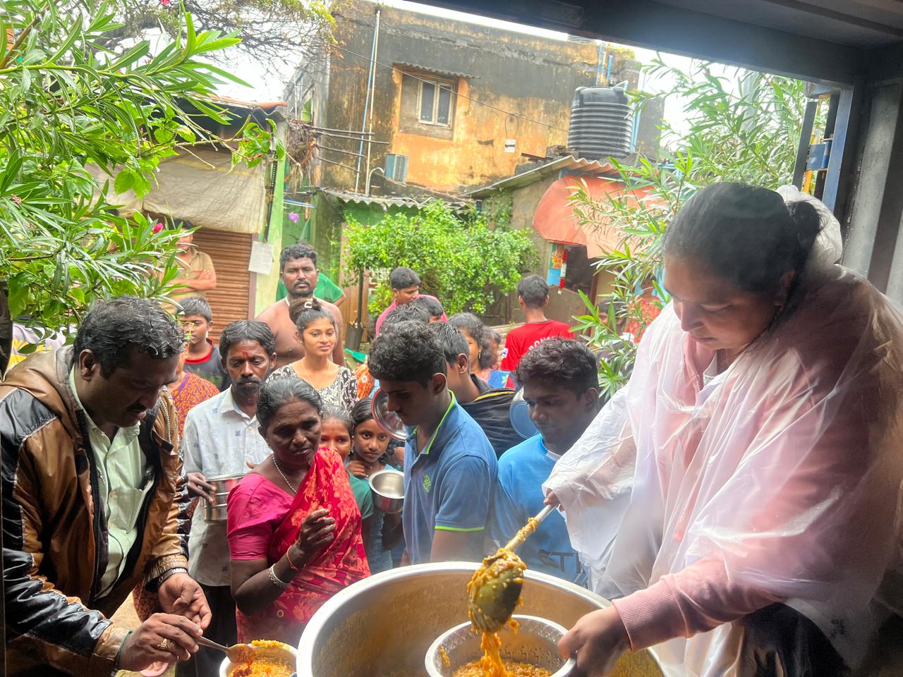 On December 3, Ecokitchen, a unit of Y R Gaitonde Medical Education and Research Foundation based at Injambakkam, ECR arranged to provide food to residents in the kuppam areas along Marina Loop Road whose lives were affected by the steady rain and cyclonic weather this week.