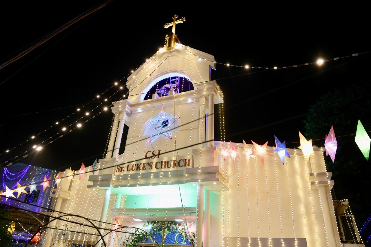 Elsewhere, the churches on the TTK Road end and R. K. Mutt Road’s south end stood out with lovely illumination marked with scores of lit stars. Services were also held here. ( photo above is of CSI St. Luke’s Church, Mandaveli)