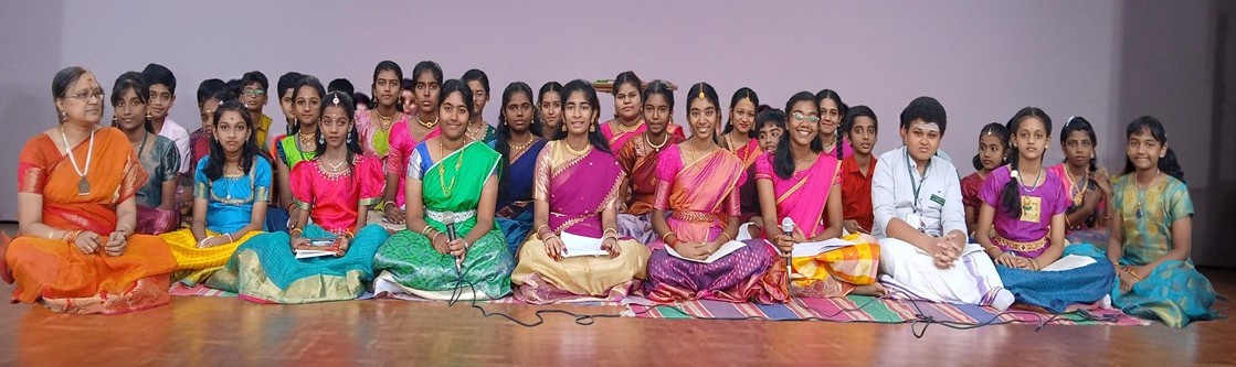 Students in grades VI to XI sang the pancharatna kritis to pay homage to the great music composer Thyagaraja. They did it in the way Carnatic music artistes do at Thiruvaiyaru in Thanjavur at the place where Thyagaraja is said to have attained mukti.