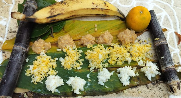 On turmeric leaves, we offer rows of sweet pongal, yellow rice, and curd rice to the crows, chanting “Kanu Pidi Vaithen, Kakkai Pidi Vaithen.” It is a beautiful lesson in compassion for all living beings.