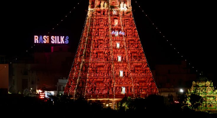 HRCE minister P. K. Sekar Babu inaugurated the new lighting system of Sri Kapaleeswar Temple