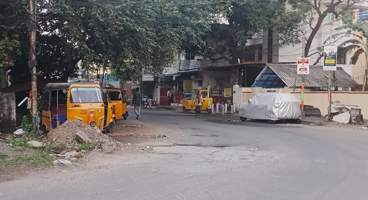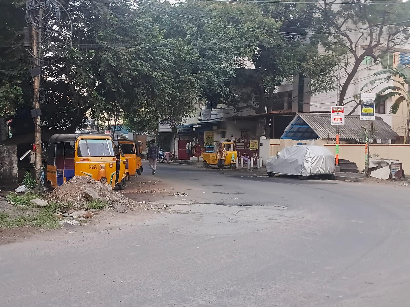 MTC buses diverted on this route find it difficult to turn left and then right near the Nandalala temple campus junction. Because the left corner of the road end here is encroached on by autos and taxis which use as a parking lot. There is also an auto mechanic operating here.