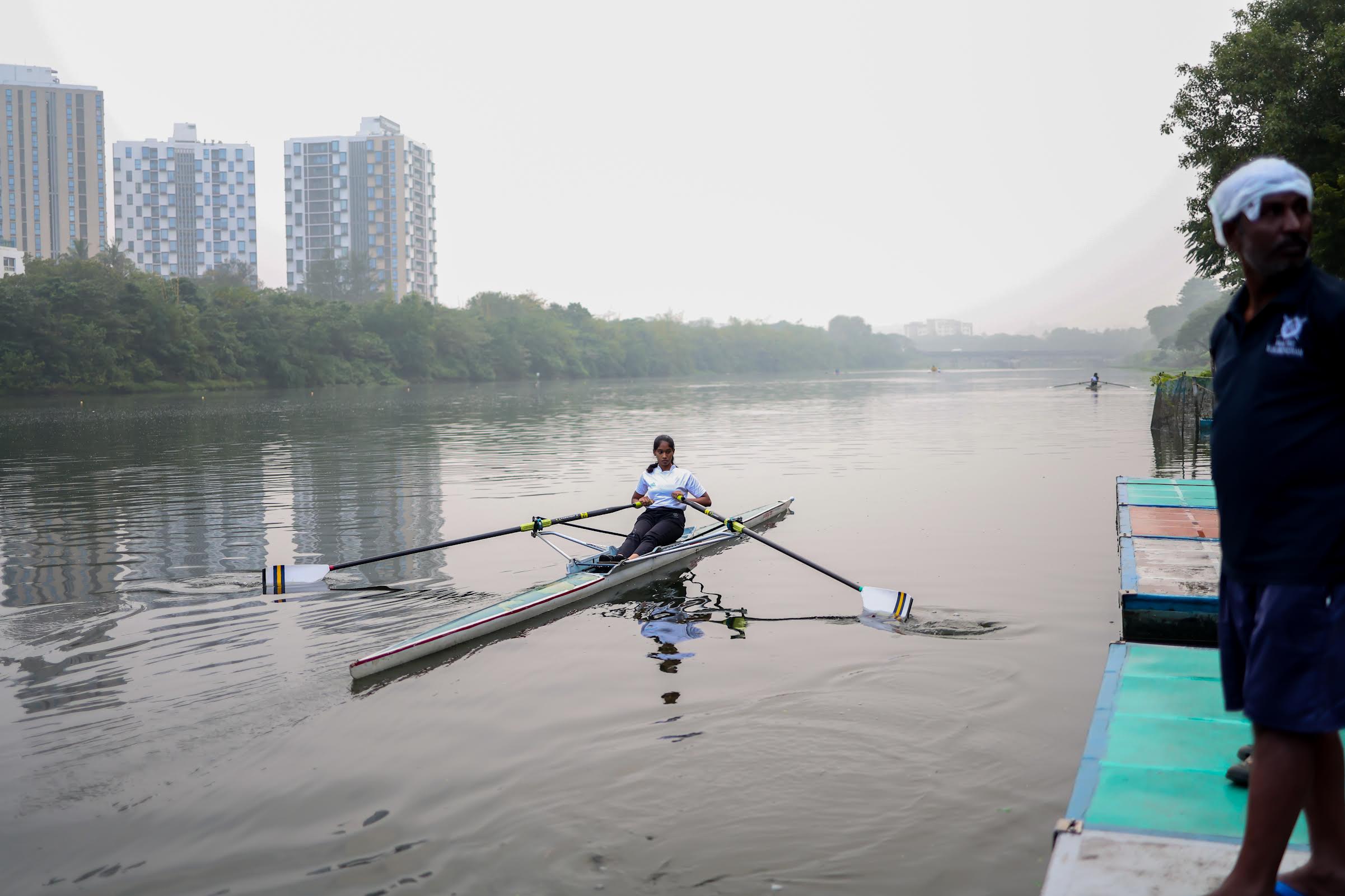 Under a CSR project managed by and at Madras Boat Club, 15 underprivileged girls have been training for the past six months under the eye of coach James.