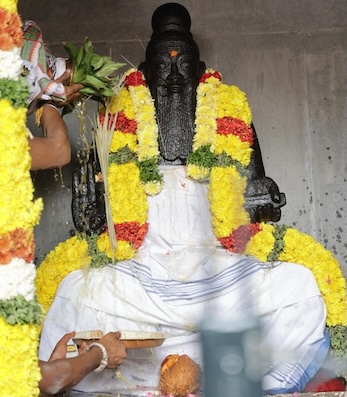 A few hundred people gathered inside the new-look, completely re-constructed, all-granite temple dedicated to Thiruvalluvar located in a small street of Mylapore on February 27 morning to participate in the temple’s kumbabishekam.