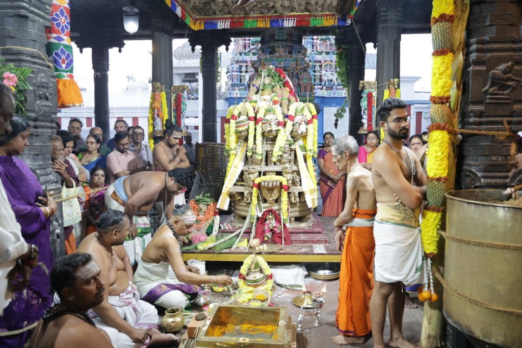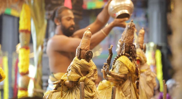 After this was done, the gods moved to the sanctum where the patrikai was read. A gentle invitation to the gods for the temple’s brahmotsavam, detailing all the events and the dates on which these would be held. One would call this similar to a ritual at a pre-wedding event.