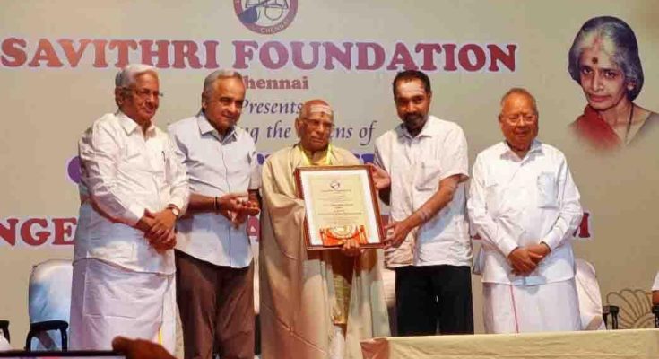 Since Guruvayur Durai could not attend the event, his sishyas received the award.