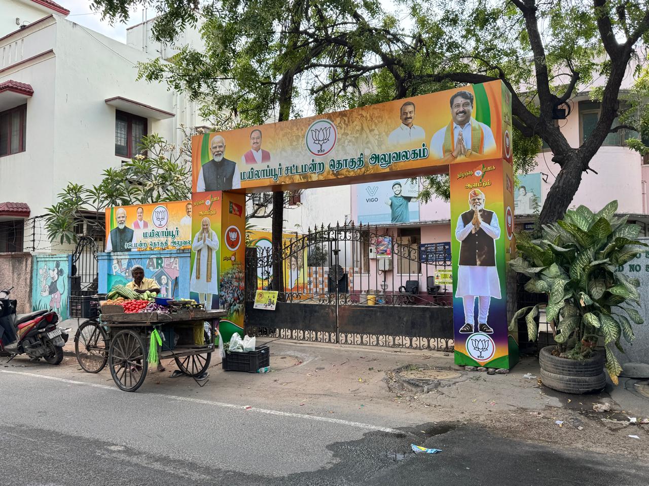 The BJP party has opened an election office for the Mylapore constituency inn Saradapuram, near Sai Baba Temple, Mylapore.