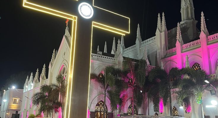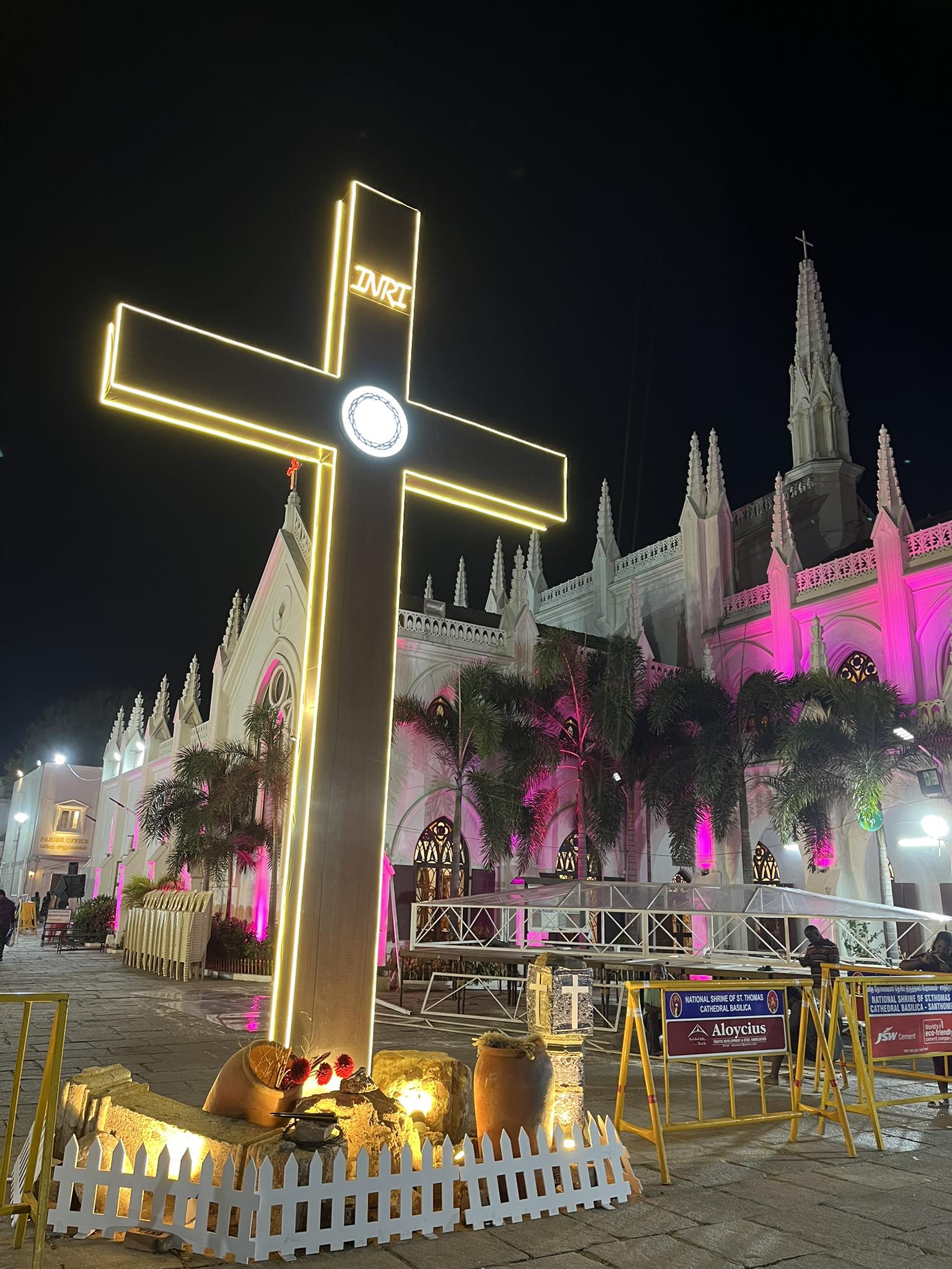 A giant cross has been erected in the middle of the campus of St. Thomas Cathedral in San Thome.
