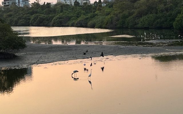 Mandaveli resident Fabiola Jacob who goes on walks in the Poonga zone said that ”this area seems to be going completely dry. The birds have disappeared too, except for one painted stork and a flock of black-winged stilts.”