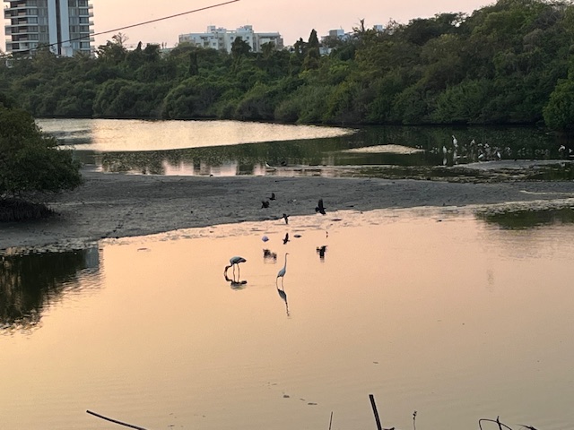Further in, where there was a large pool of water, there were dozens of birds, seeking feed in shallow waters.