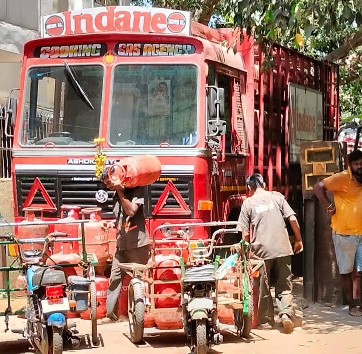 Elsewhere, Bharat Petroleum is expected to send a lorry load this afternoon to its shop in the Corporation complex of Venkatesa Agraharam street where Sowmya Gas Agencies is functions. Poeple waited in the sun or sat in tree shade, hoping to carry home a cylinder.