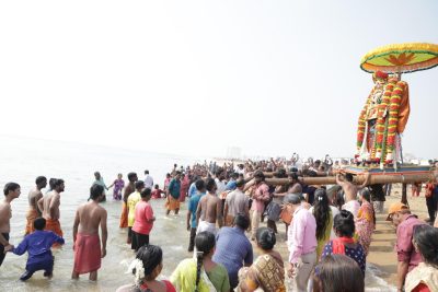 Processions started from Sri Veleeswarar Temple and from Sri Kapaleeswarar Temple, besides other temples around 8 a.m. and headed to an area on the Marina shore off the Light House.